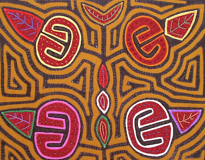 The Kuna Indians of the San Blas Islands make exquisite textiles like the photos I have here, called molas. These panels are used to decorate women's blouses, normally one in the front and one in back. They were originally inspired by traditional motifs from their body art and Kuna legend, but later went on to incorporate images from daily life, including the mass media.