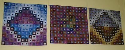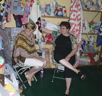 Dear Reader- Are you here in Paducah for our annual quilt show madness? If you are, then you must, I mean, MUST come visit us! I'm part of a fiber art group here in Paducah which is in the process of choosing a name for itself. We've been meeting for two years with no name and finally, the time has come. Tentatively, I'm referring to us as "Paducah Fiber Artists". Three of us have sublet a retail space downtown, 212 Broadway, just a few blocks from the Convention Center where the real madness reigns. We have lugged our boxes, set up our shelves and have our wares ready for the taking.- Ralli quilts