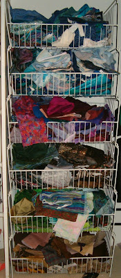 Back home I drew fabric samples of different colors from my stash to serve as background for stars that I cut from the Hoffman fabric. All quilters have a stash consisting of fabric bought on a whim but never used and left-over scraps from former projects. These stashes help quilters decide on color schemes for new quilts, supply small amounts of accent fabric for new projects, and provide fabric needed for appliqué and scrap quilts. Unfortunately, stashes seem to grow uncontrollably. One quilter told me that she places her fabric scraps in a box that she stores in a dark warm closet where they multiply.