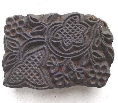 Every few months I get a big bag of new textile stamps. I buy them sight unseen and just got my newest order. Usually there is a whole range of sizes, but this time, most were in the medium range, around 5" or 13 cm square. I've been offering first dibs to my regular customers through my website, but now that I have this blog, I'll make the offer public.